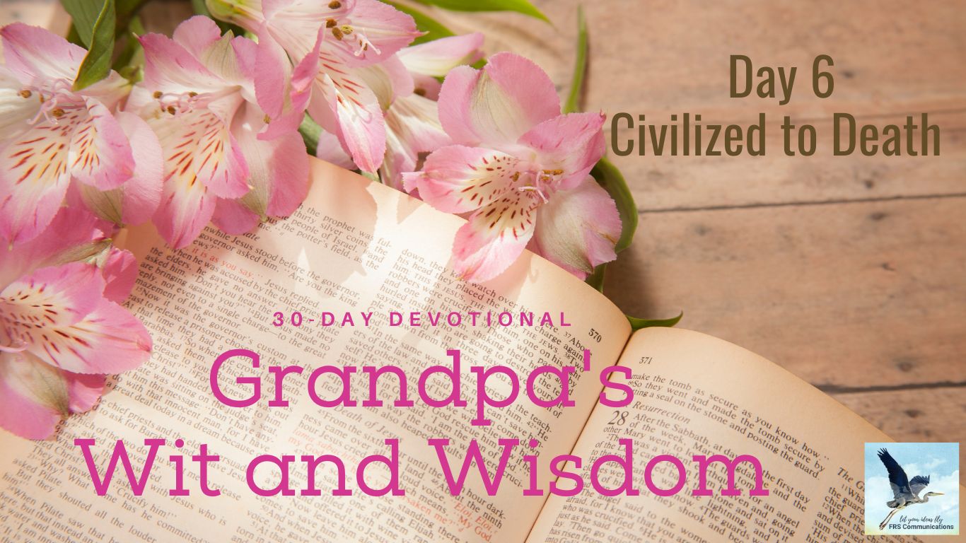 Watch out! Be on your guard against all kinds of greed; life does not consist in an abundance of possessions. Luke 12:13-21 In the older sections of this country may be seen old buildings which have housed the same family for three or four generations. When our great grandsires, in some instances our grand siresContinue reading “Day 6: Civilized to Death”